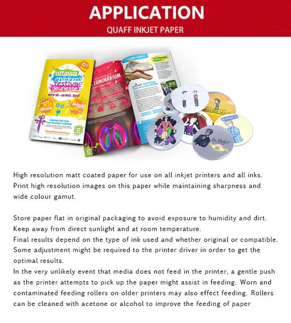 [1 Pack] QUAFF 108gsm Inkjet Matte Paper 100 sheets – for flyers/photo insert paper/button pins paper