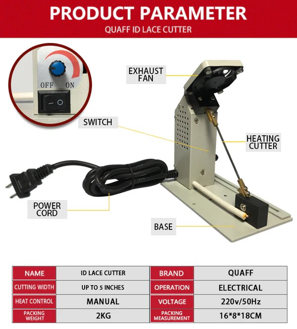 This ID lace cutter heats fast and can cut fast. The knife is made of imported high-quality rolled steel. Lightweight and portable consume less space. Heavy-duty, high speed, high accuracy, designed for cutting non-adhesive materials.