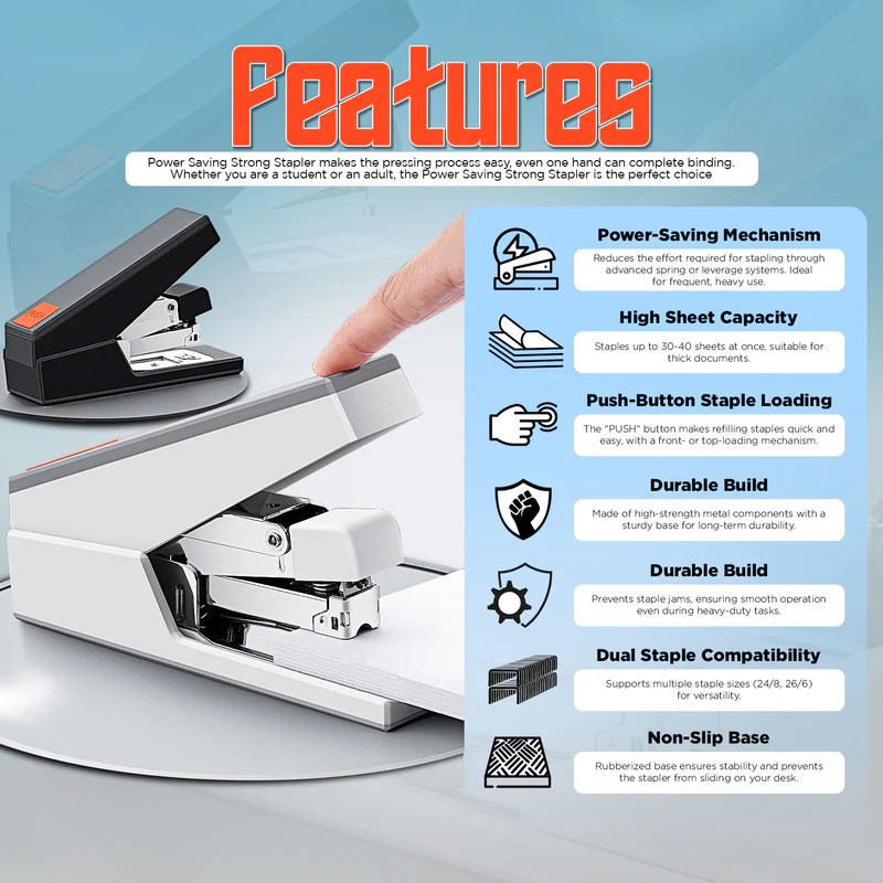 Power Saving Strong Stapler White (40 Sheets)