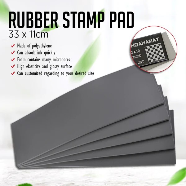 This rubber stamp pad with 33.5 x 11cm size, can be cut down regarding to your desired size. Have fine, soft texture. Smooth engraving, high elasticity and glossy surface, it can absorb ink quickly having a fine ink loading and precise printing. Avoiding distortion, suitable for printing small words and different figures. Chemical, oil, abrasion resistance